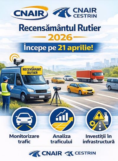 România dă, mâine, 21 aprilie, startul recensământului general de circulație rutieră, o acțiune de amploare desfășurată la nivel național, coordonată de Compania Națională de Administrare a Infrastructurii Rutiere și CESTRIN, în parteneriat cu consiliile județene. Studiul are rolul de a oferi o imagine reală asupra traficului și de a fundamenta marile proiecte de infrastructură din următorii ani.