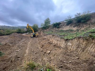 DRDP Timișoara: sunt executate lucrări pentru stabilizarea versantului pe Varianta Ocolitoare Domașnea.