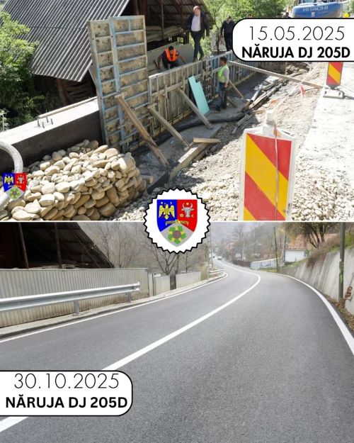 – DJ 205D – #Năruja: Lucrările au inclus refacerea zidurilor de sprijin, șanțuri, rigole, parapete și reabilitarea conductei de apă. Valoarea investiției: 3 milioane lei.