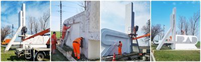 Lucrările au fost realizate de angajații Direcția Regională de Drumuri și Poduri Timișoara, prin SDN Timișoara, instituție aflată în subordinea Compania Națională de Administrare a Infrastructurii Rutiere. Intervenția a inclus curățarea monumentului, refacerea stratului de vopsea și reîmprospătarea aspectului general.